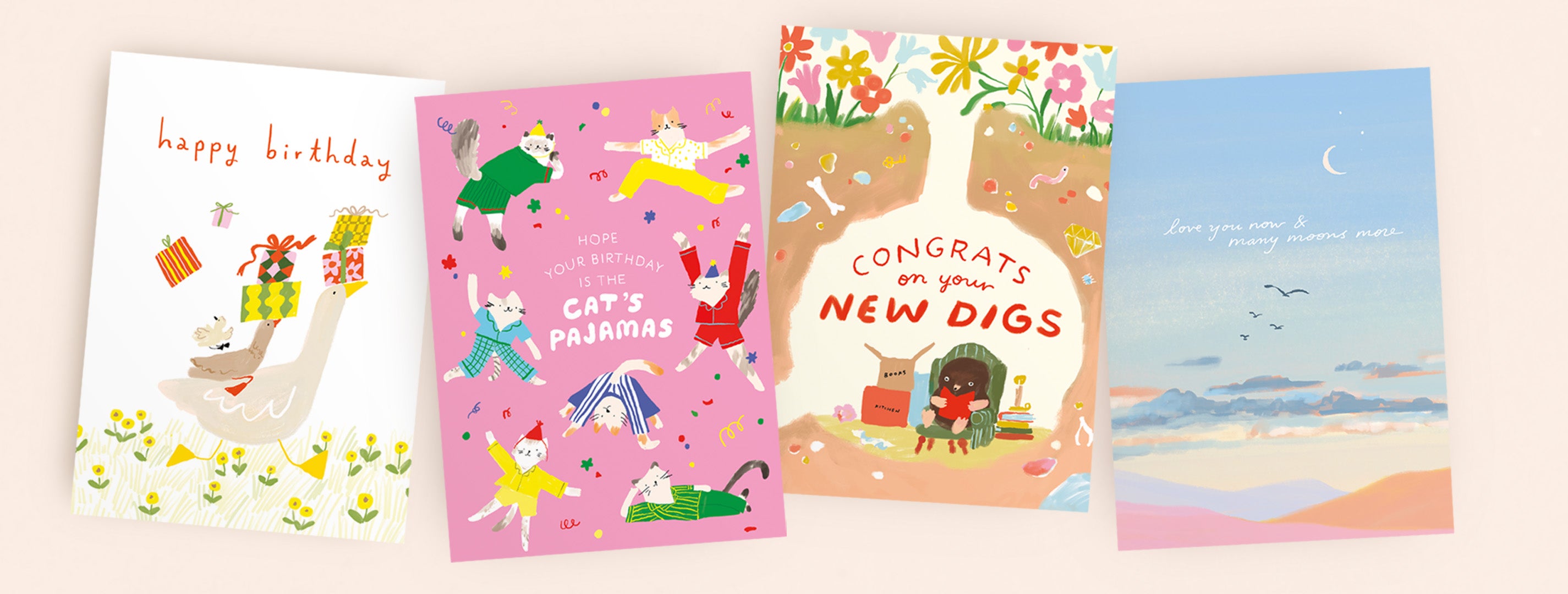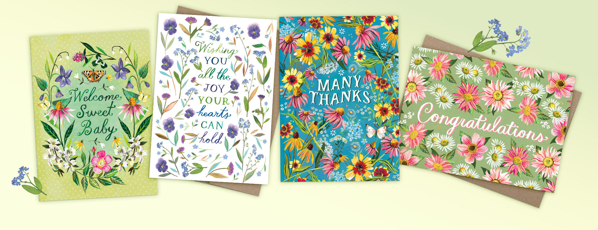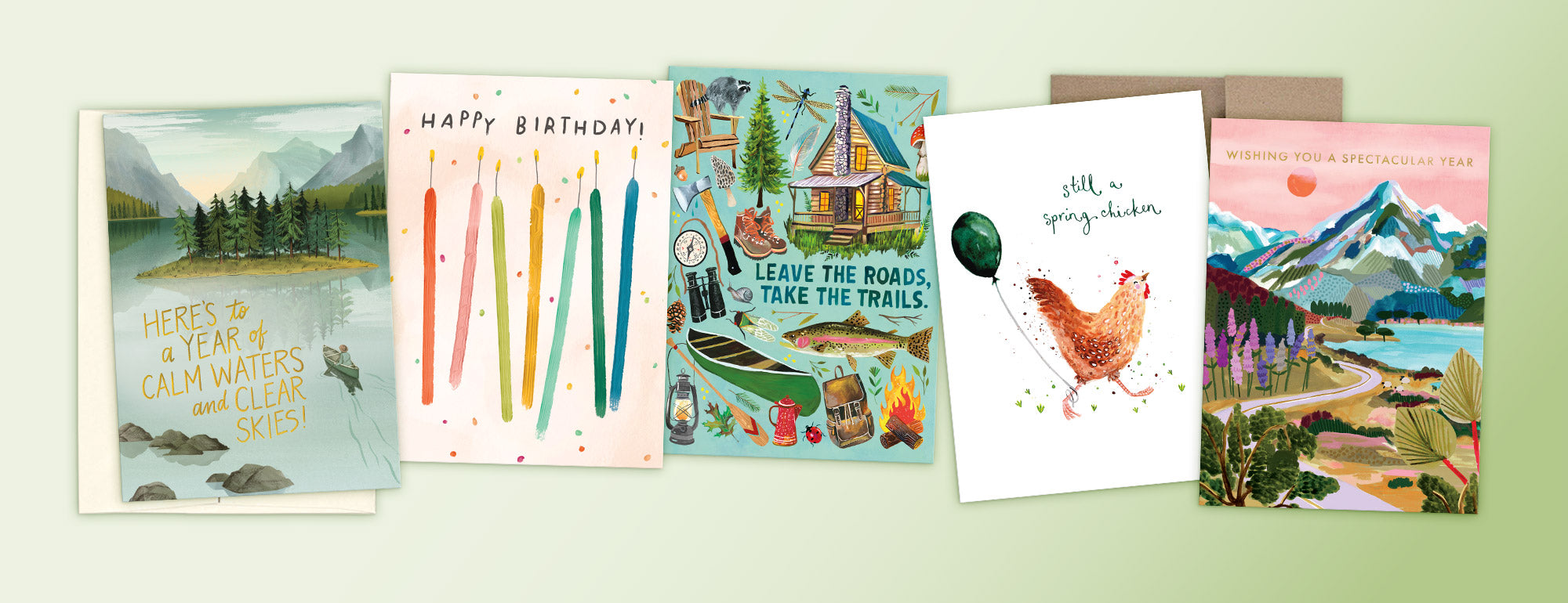 Our diverse greeting card line showcases immensely talented artists including Katie Daisy, Louse Mulgrew, Carrie Shryock, Meera Lee Patel, Sarah Forster, Joy LaForme, Geninne Zlatkis, Kenzie Kae Elston, Jessica Swift, Carrie Schmitt, Magrikie Berg, Alexandra Snowdon, Misha Zadeh, Anne Keenan Higgins, and new artists Lisa Jane Smith, Chloe Hall, Hebe Studio, Emma Block, Sarah Long, and Emily Taylor! The individual looks of these top designers combine to create a beautifully curated in-store palette that your customers will enjoy.